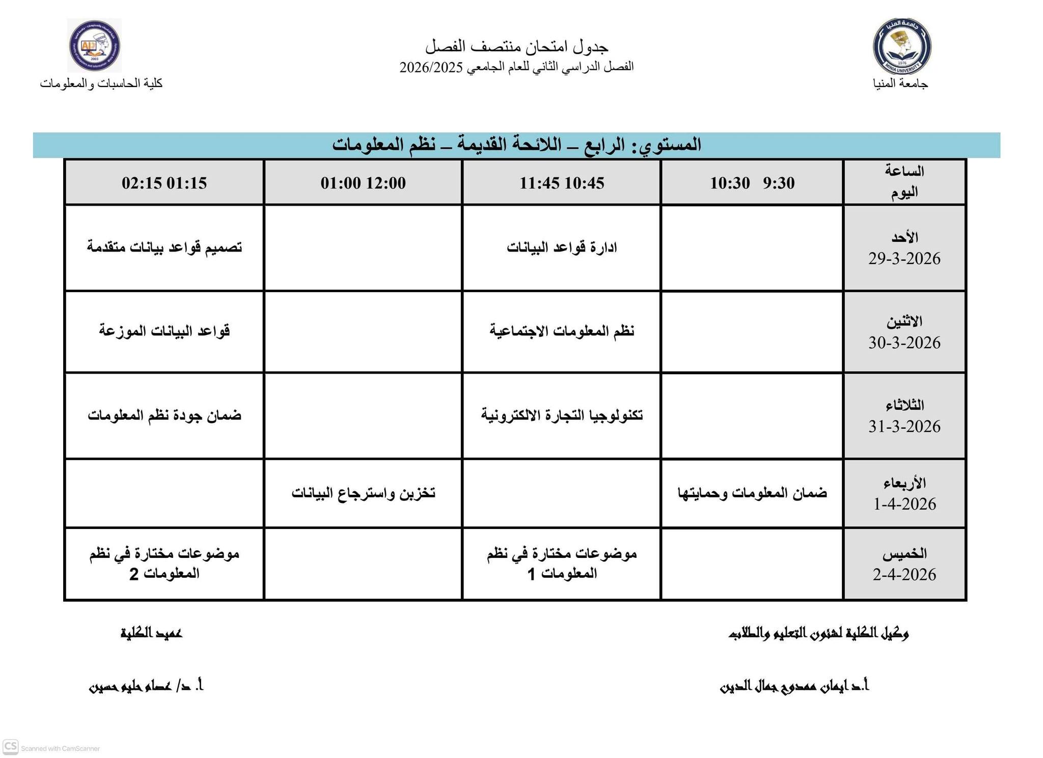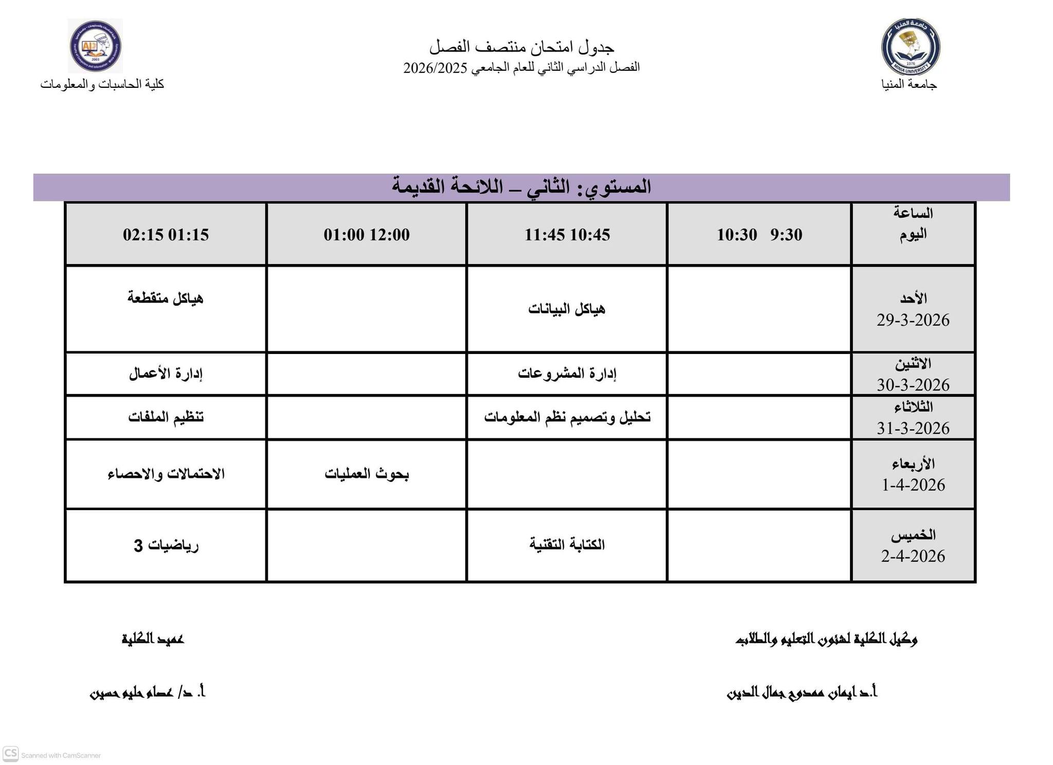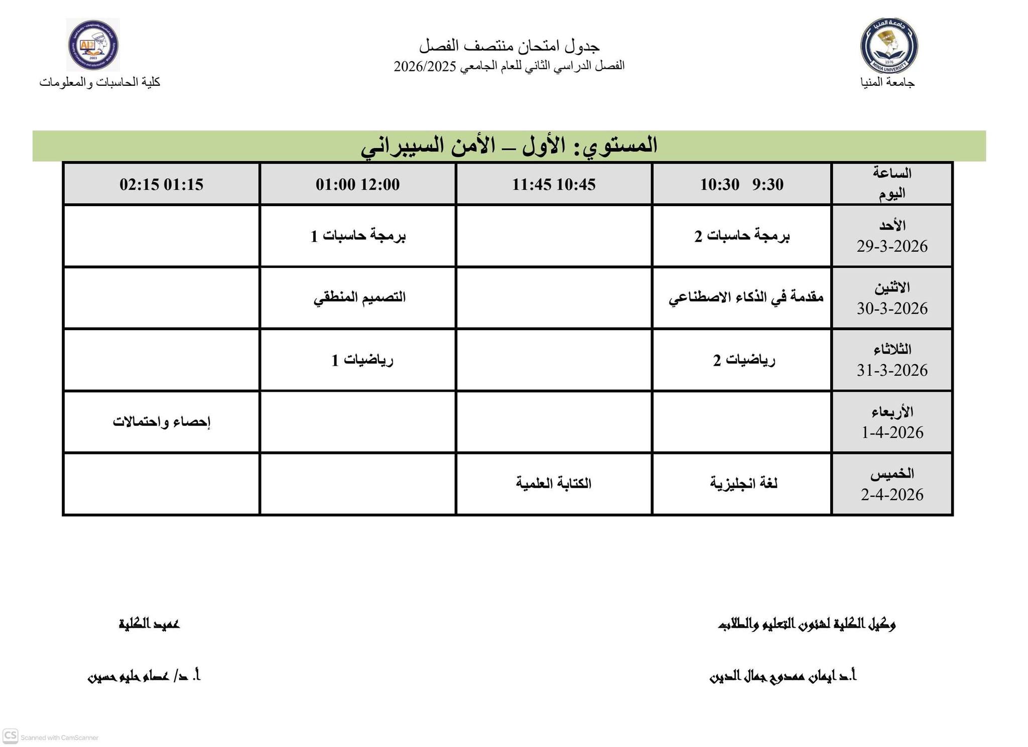 جدول امتحانات منتصف الفصل الدراسي الثاني "الميدتيرم" لجميع الفرق الدراسية (العام والبرامج المميزة )