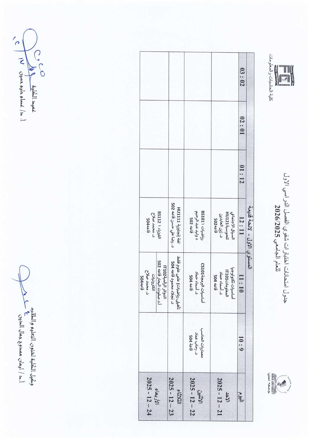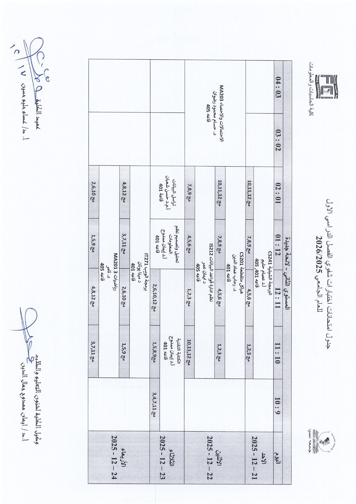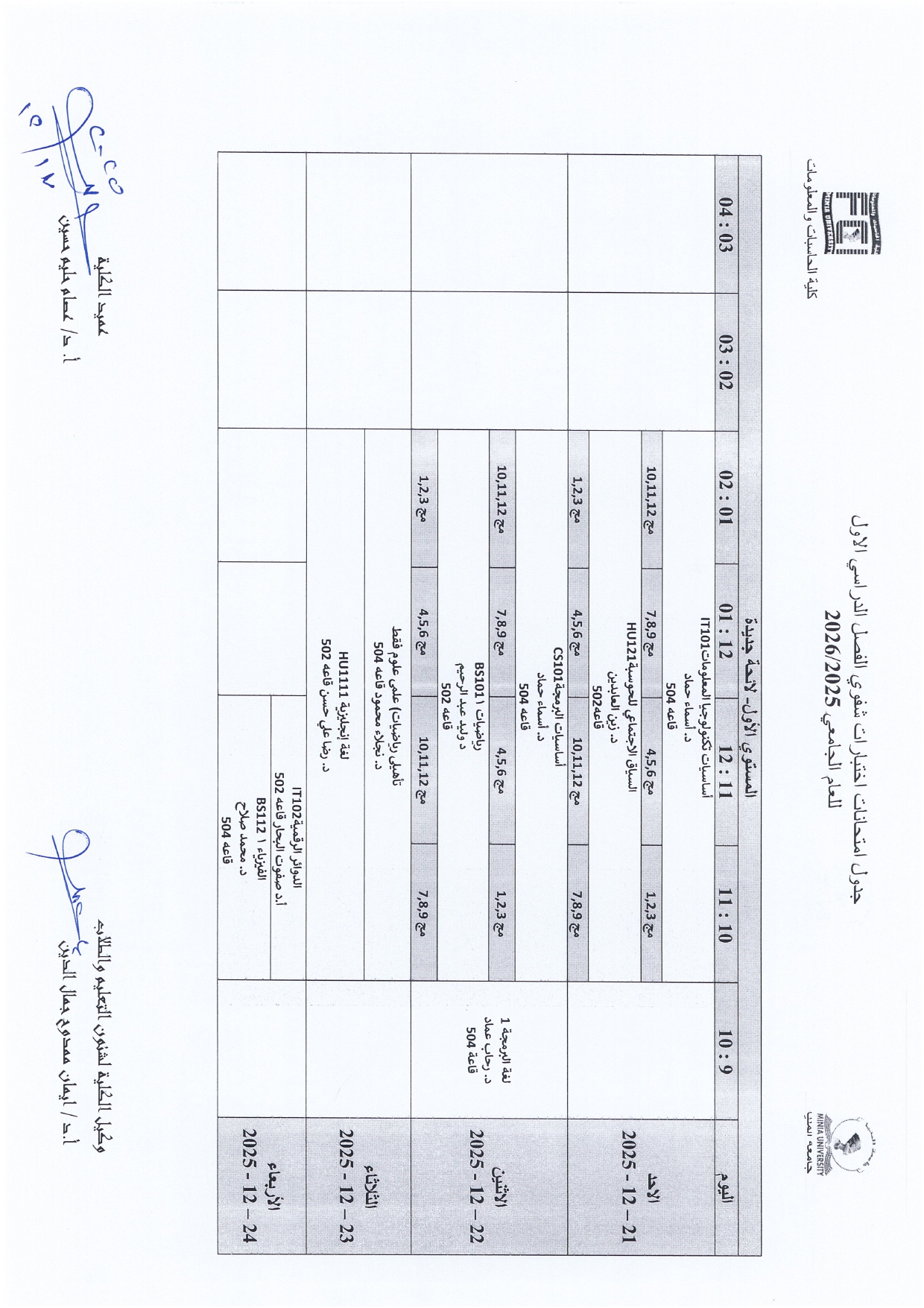 All students are required to consult the published timetable for their specific exam dates, times, and assigned locations. Adherence to the schedule is mandatory for all examinees.
