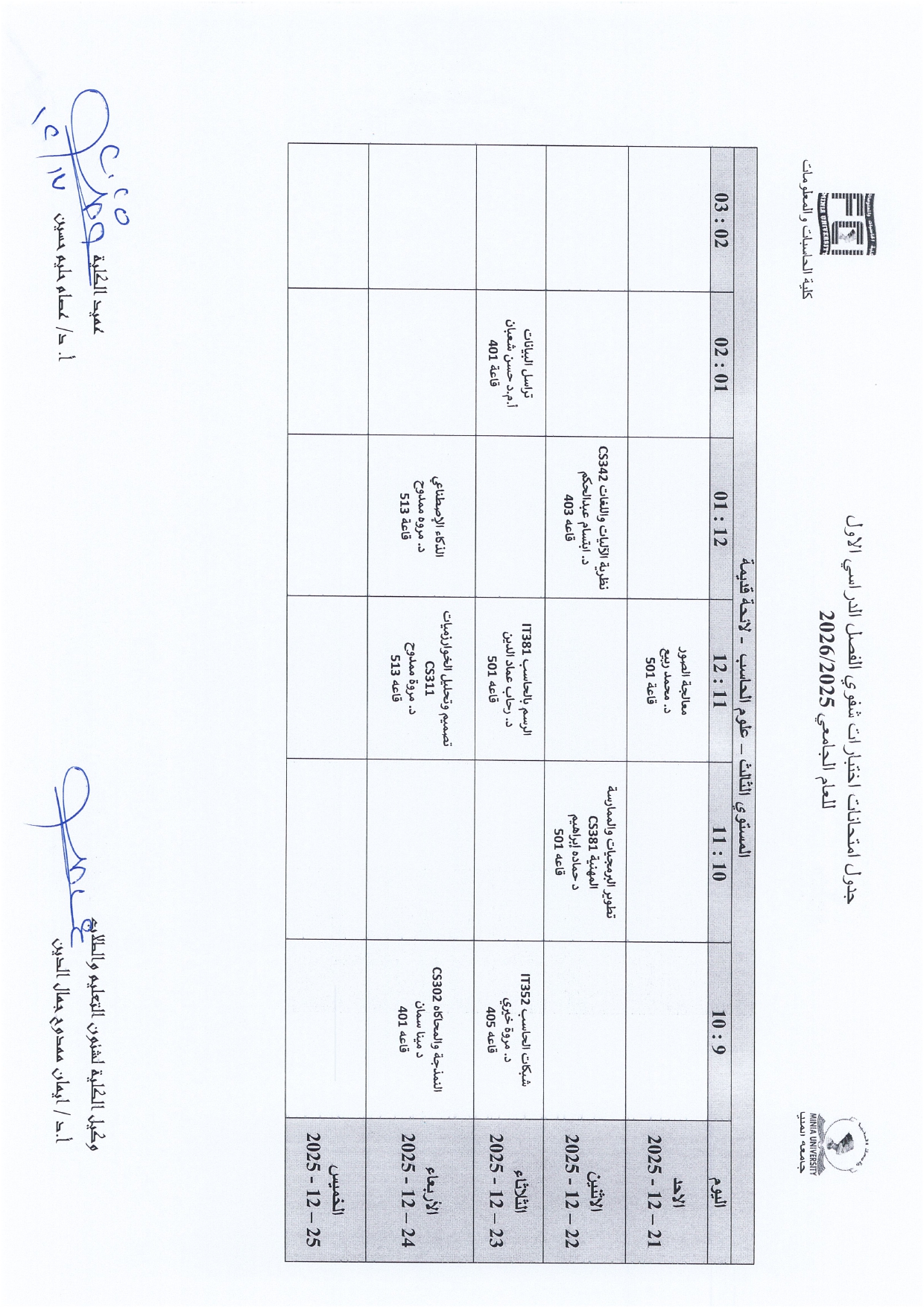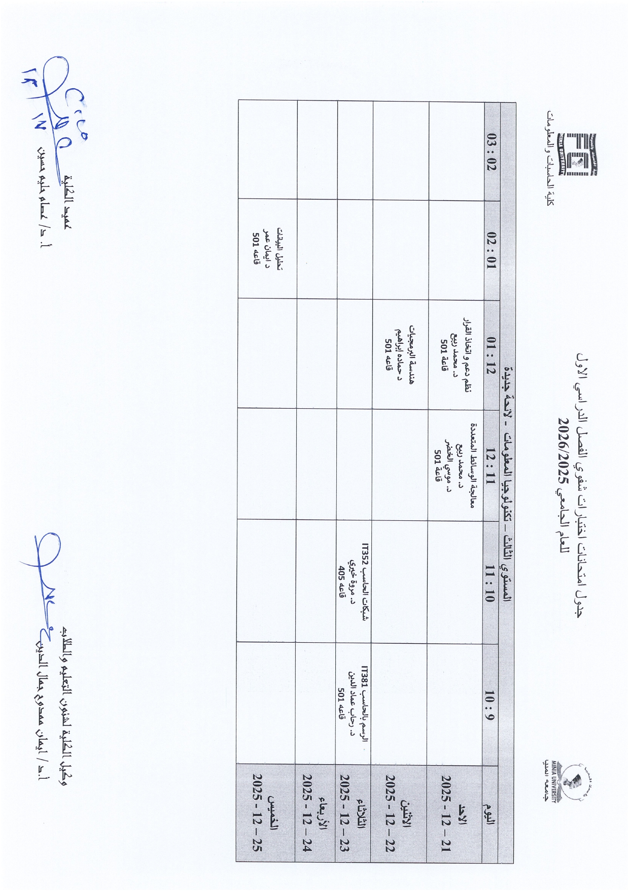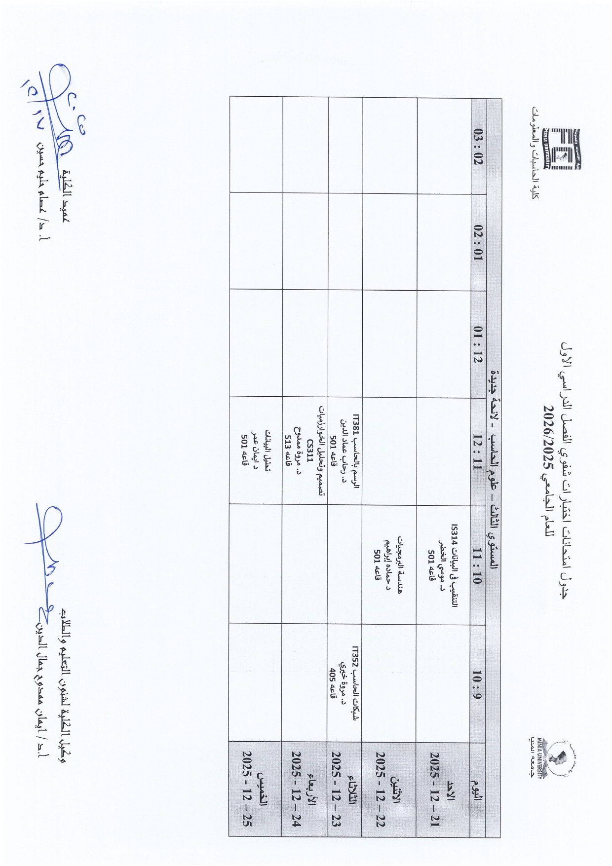 The University Administration has published the official schedule for oral examinations for the First Semester of the Academic Year 2025/2026.