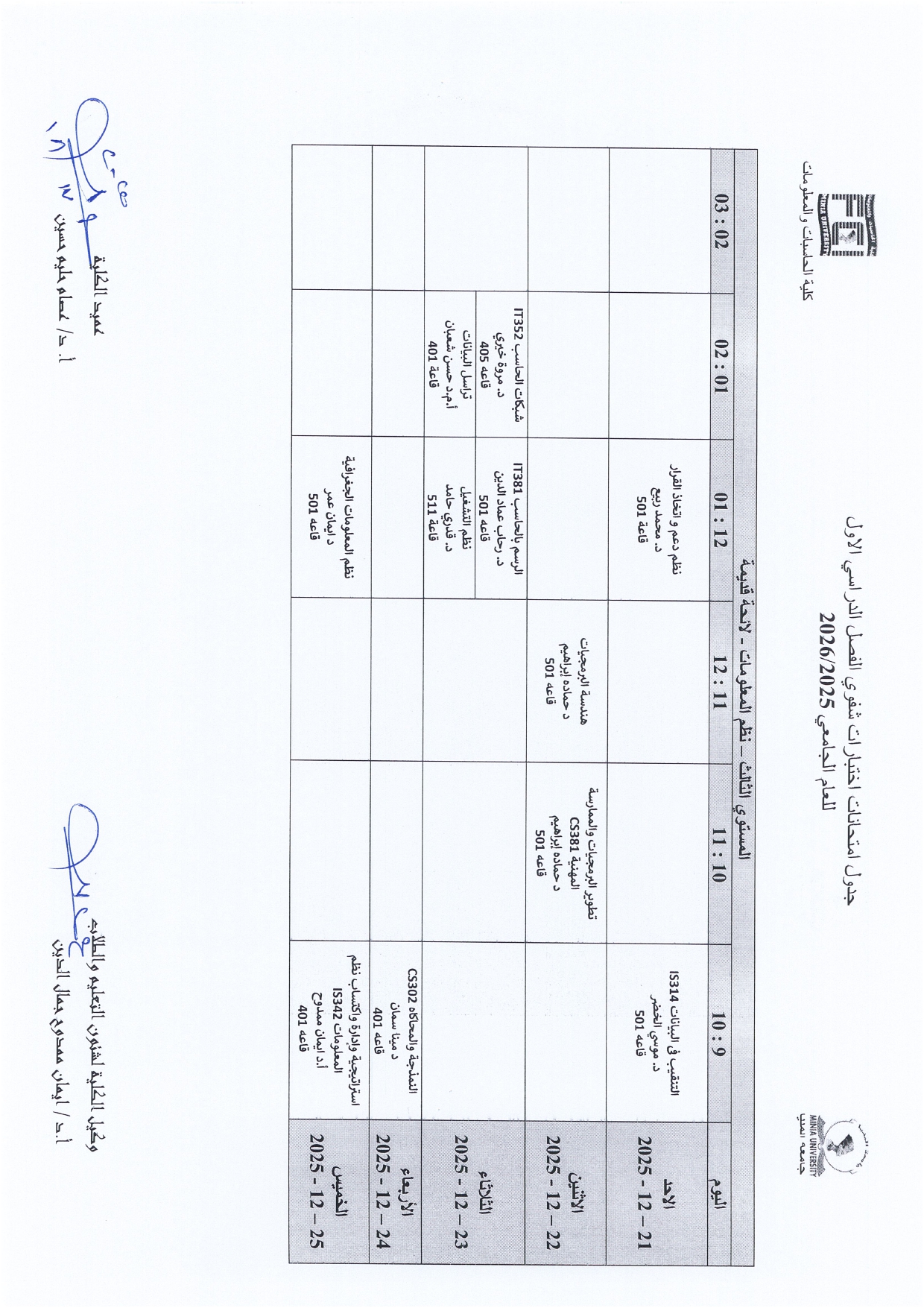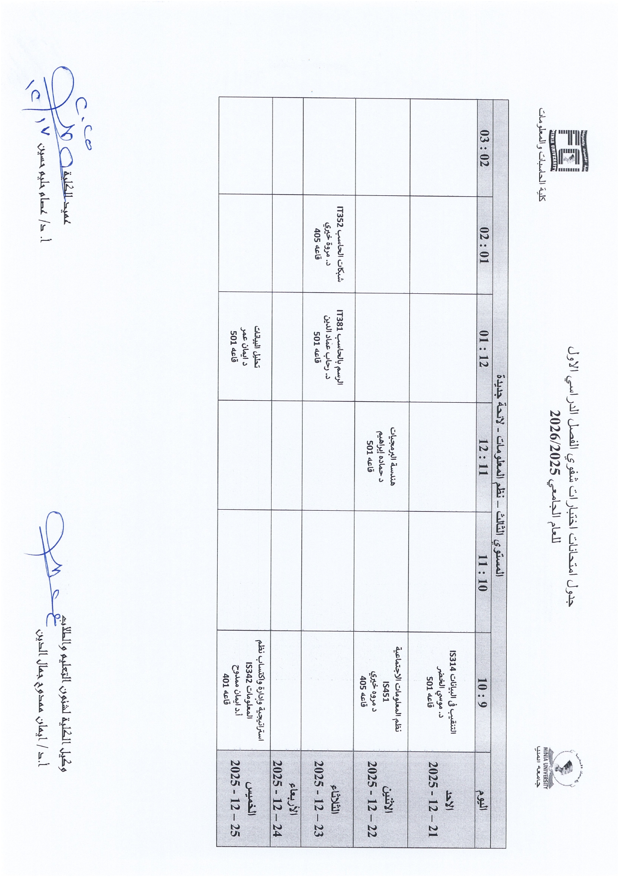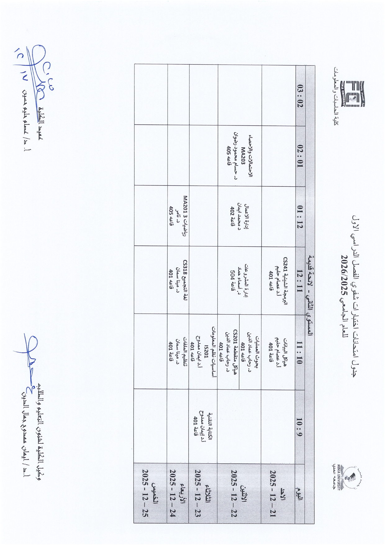 The University Administration has published the official schedule for oral examinations for the First Semester of the Academic Year 2025/2026.